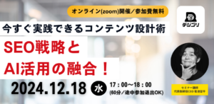 【12月18日(水)17:00〜開催ウェビナー】代表の菊池が「SEO戦略とAI活用の融合!今すぐ実践できるコンテンツ設計術」に登壇いたします